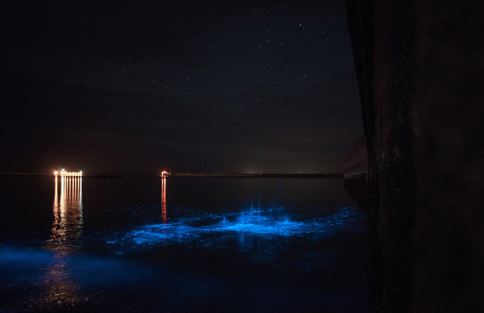 Ausgelöst wird das leuchten durch bewegung, etwa beim schwimmen oder beim surfen.