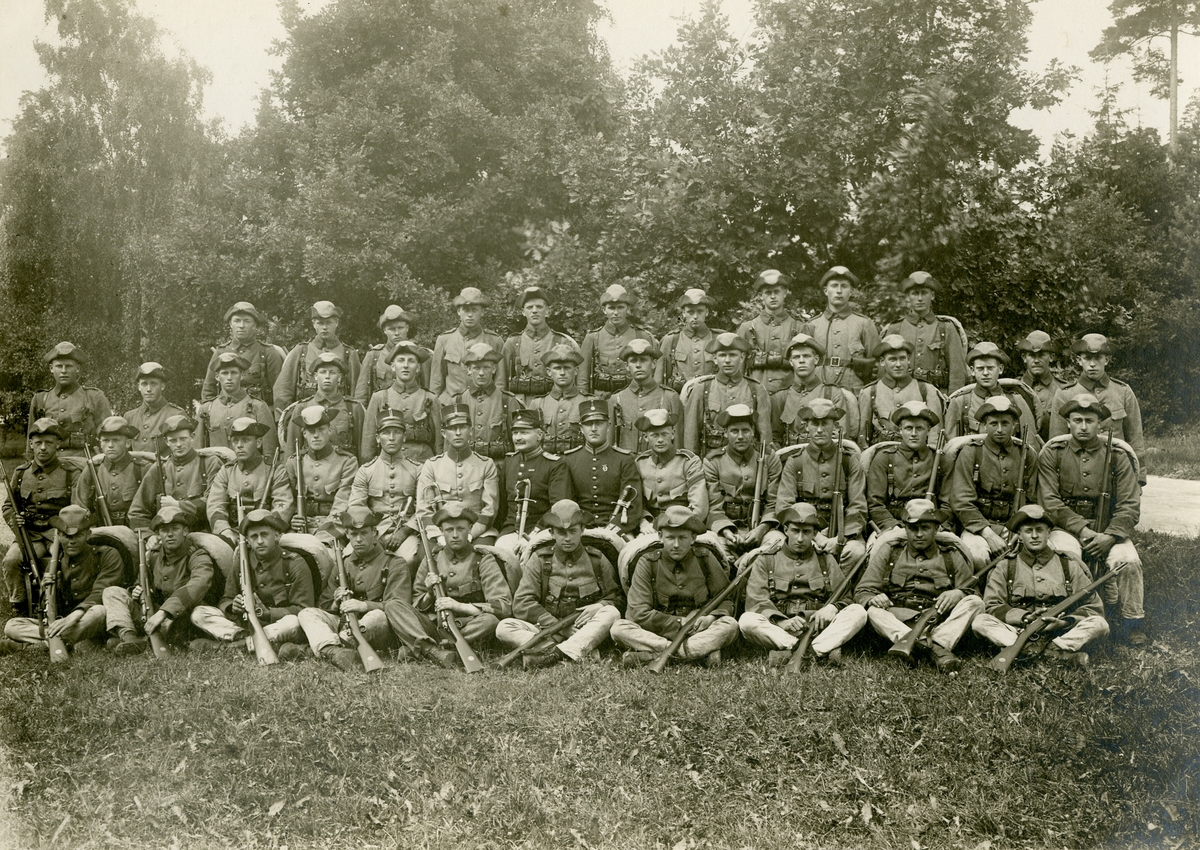 Västmanlands Regemente , Grupporträtt Av Soldater Och Officerare Vid Västmanlands Regemente I 18 På Salbohed, 1920-Tal ...